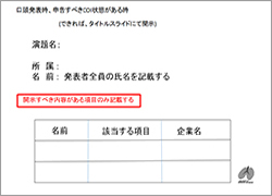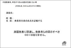 「開示例」に準拠し、タイトルスライドにて申告してください。